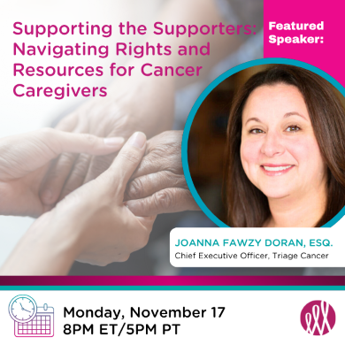 Join Sharsheret as Joanna Fawzy Doran of Triage Cancer leads an informative discussion on the rights and resources available to those caring for a loved one with cancer.
