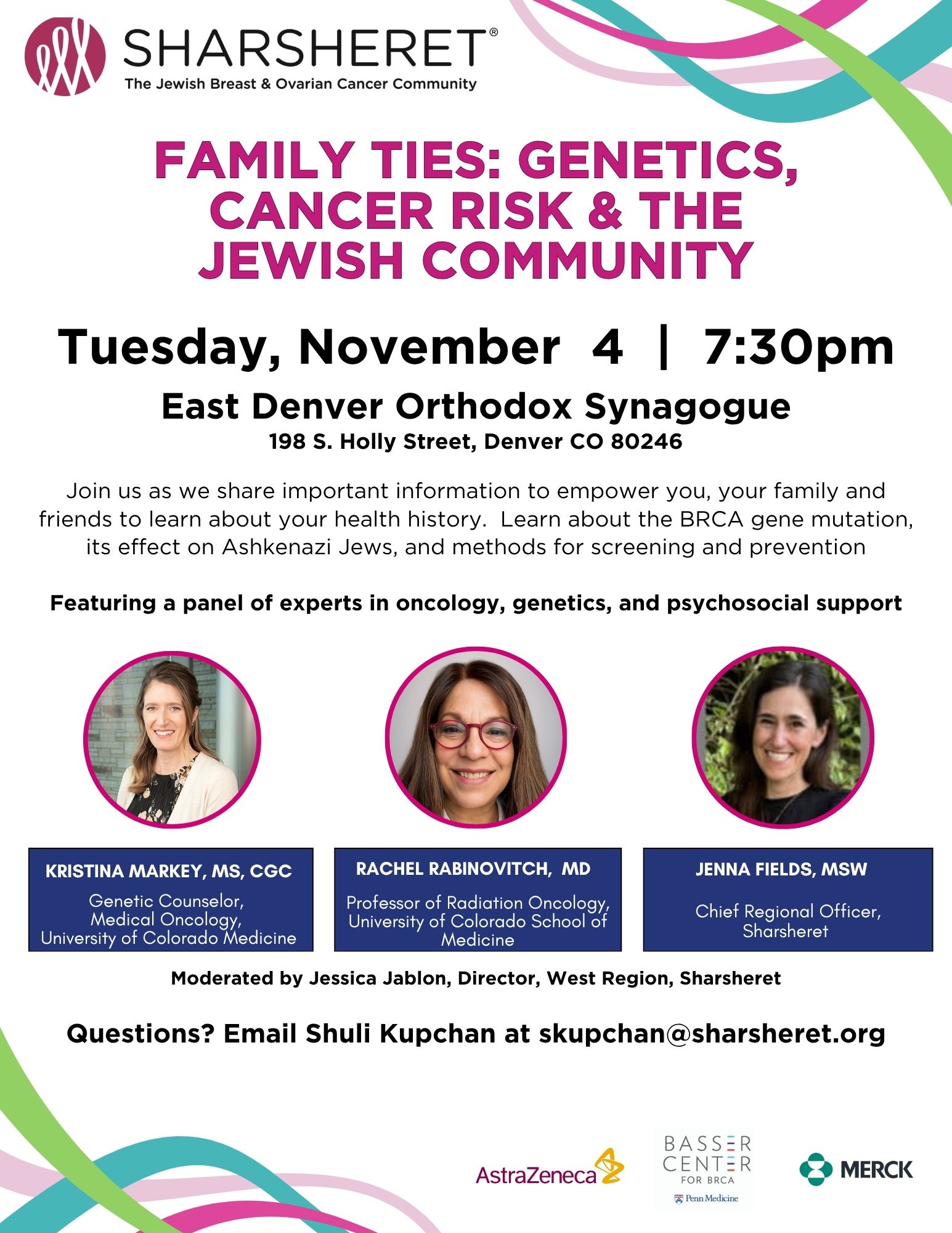 Join us as we share important information to empower you, your family and friends to learn about your health history. Learn about the BRCA gene mutation, its effect on Ashkenazi Jews, and methods for screening and prevention.
